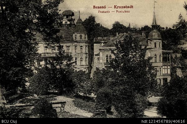 Description: Brassó : Postarét [material iconografic] = Kronstadt : Postwiese. - [S. l.] : [s. n.], [19-]. - 1 ilustrată : alb-negru ; 9x14 cm.