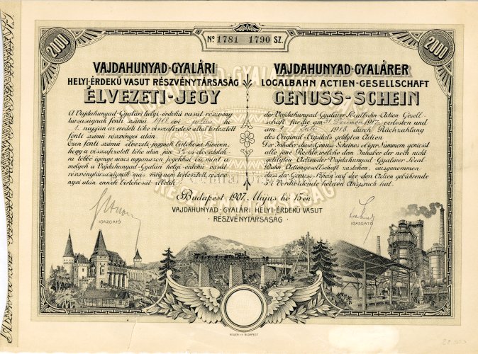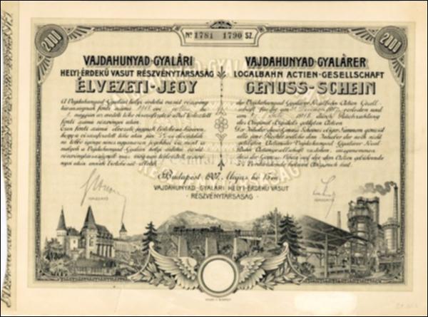 Other Titles: Vajdahunyad-Gyalárer Localbahn Actien-Gesellschaft : genuss-schein, no. 1781-1790