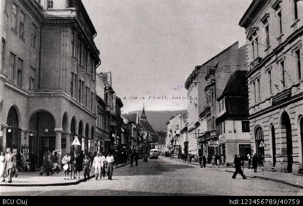 Abstract: Imagine cu Str. Republicii. Uliţa Căldărarilor (de la breasla care avea aici ateliere) sa mai numit strada Porţii de la poarta care exista la intrarea în cetate (saşii îi spuneau Purzengasse, iar ungurii Kapu utca). În perioada 1918-1947 sa numit Regele Carol, iar după anul 1947 Republicii Populare. Astăzi este str. Republicii.