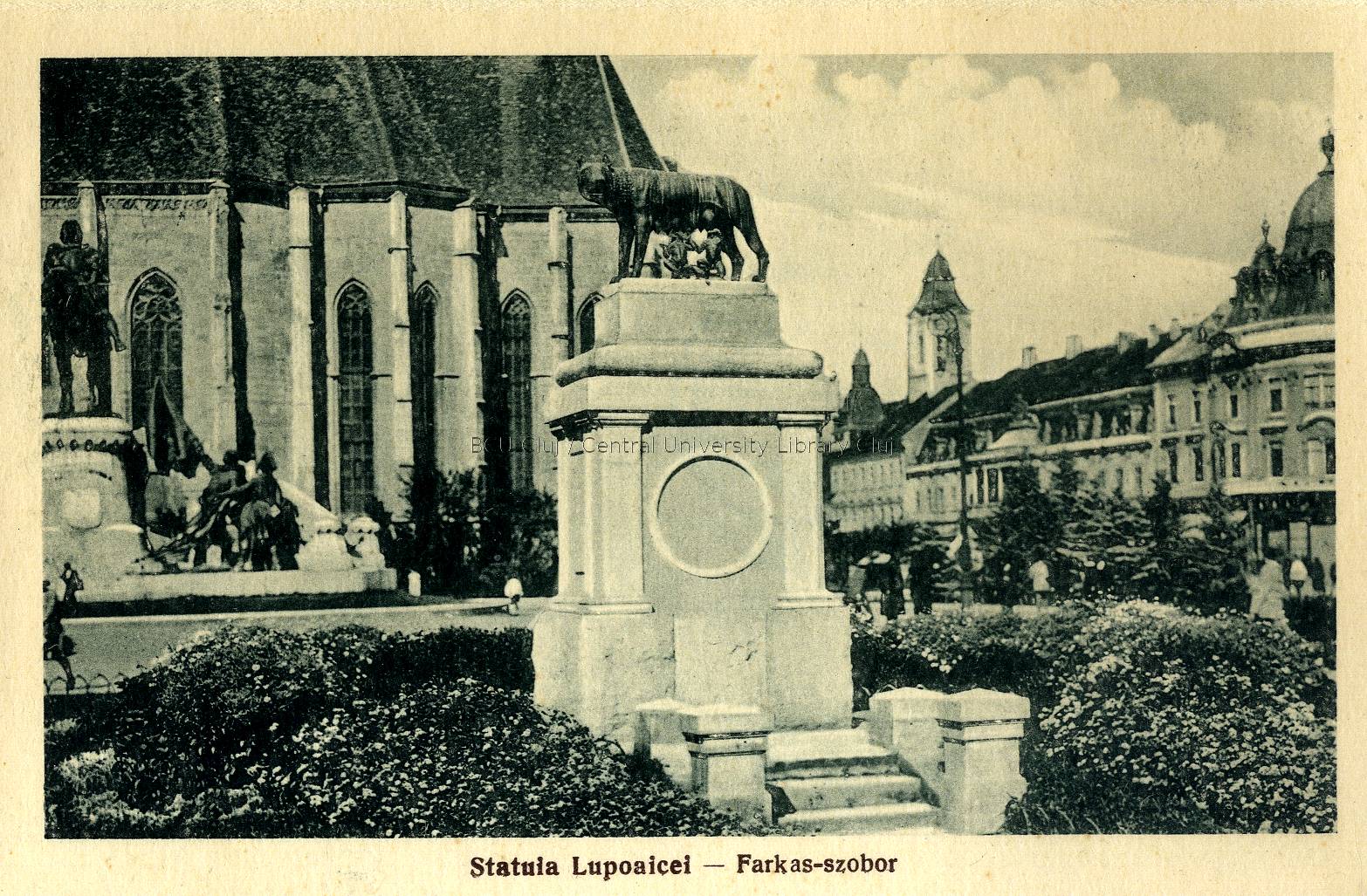 Description: Statuia Lupoaicei [material iconografic] : [carte poştală] = Farkas-szobor : [képeslap leporello]. - In: Cluj - Pliant = Kolozsvár - [Képeslap leporello], p. 2.