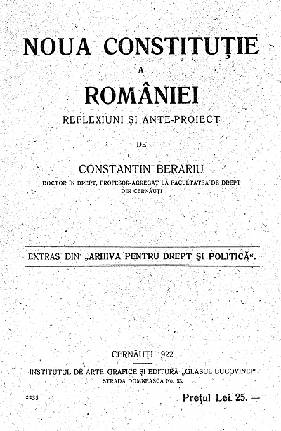 Cernăuţi : Glasul Bucovinei, 1922. - II, 86 p. ; 8°. - Extras din Arhiva pentru drept şi politică