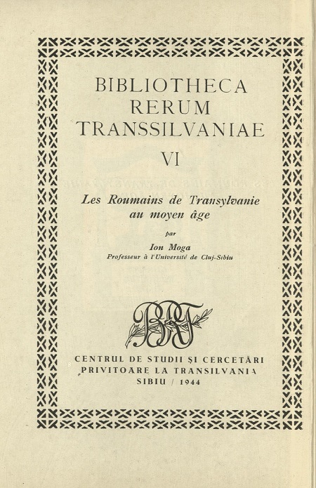Sibiu : Centrul de Studii şi Cercetări Privitoare la Transilvania, 1944. - 152 p. ; 25 cm. - (Bibliotheca rerum Transsilvaniae ; 6 )